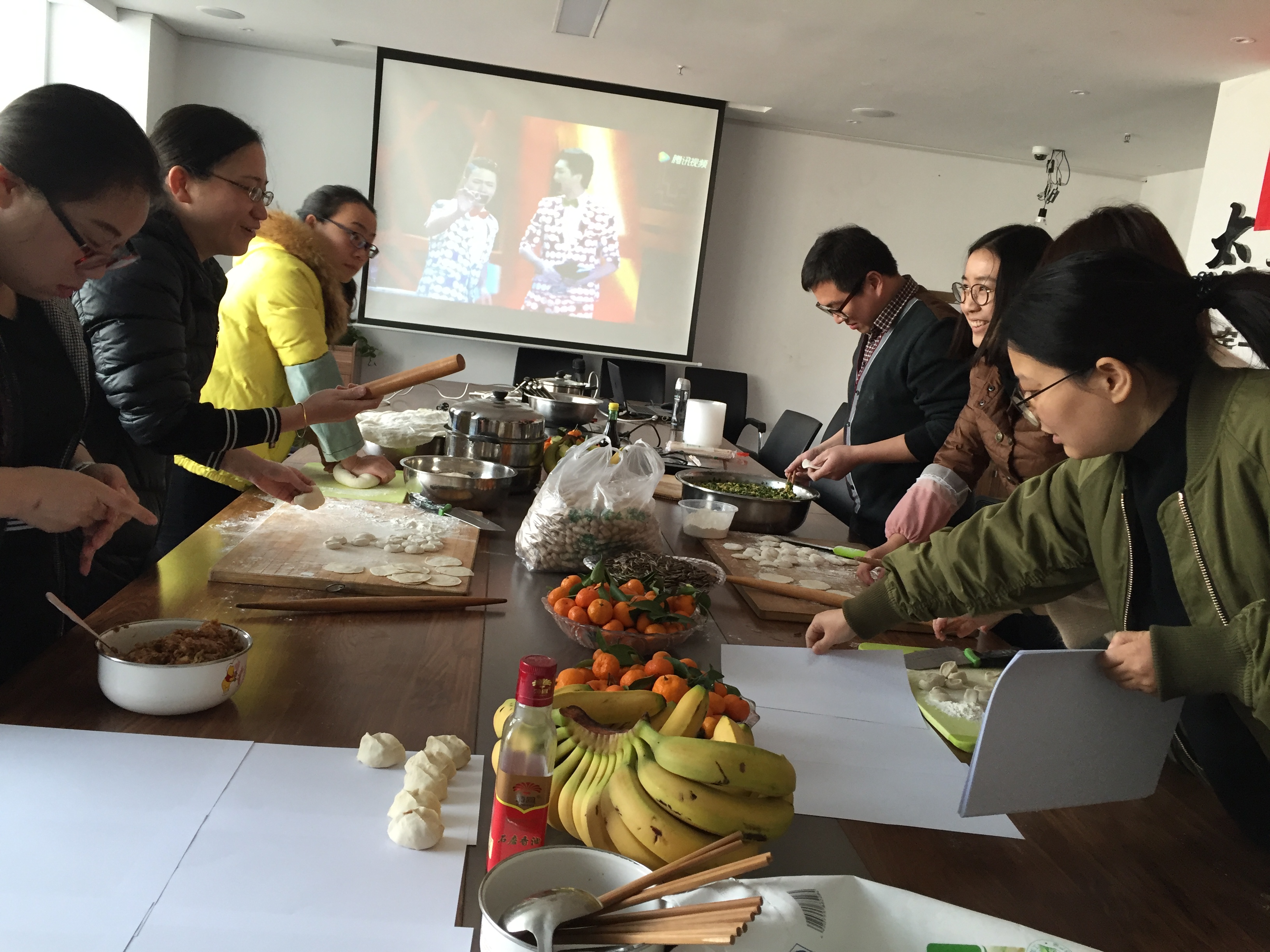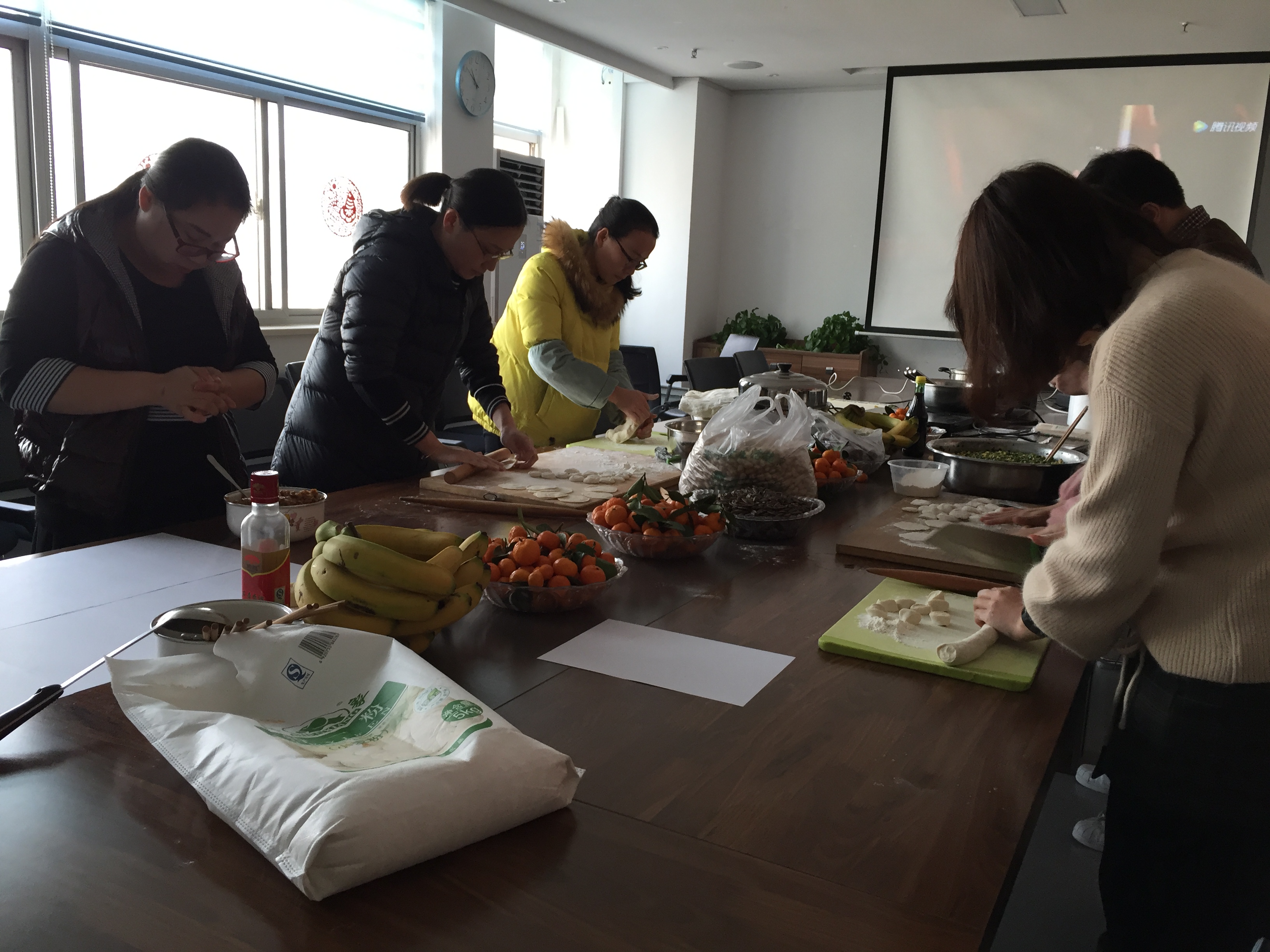 年年冬至公司都會(huì)舉辦這樣一個(gè)活動(dòng),不只是為了增進(jìn)員工與員工之間的協(xié)同合作關(guān)系,促進(jìn)感情和友誼,更是企業(yè)文化的一種深刻體現(xiàn)。剛到十點(diǎn),大家活兒就忙碌起來(lái),就是為了趕在,有揉面的、搟皮的、包餃子的,都紛紛拿出各自的看家本領(lǐng)了。餃子也一排排的整齊放在案板上,有素餡的、肉餡的,包的圓的、扁的,各種形狀各種口味眼花繚亂,令人胃口大增。