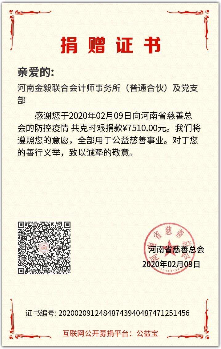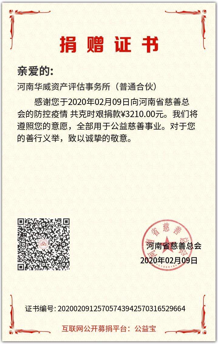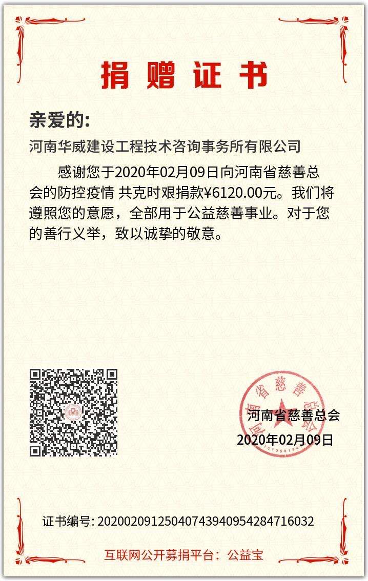 截止 2 月 8 日 18:00 時,本次活動收到慈善款共計人民幣 16840.00 元,其中單位捐款11,000.00 元,個人捐款合計5840.00.00 元。已于9日將全部捐款轉(zhuǎn)至河南省慈善總會賬戶,及時支援河南省防疫工作。