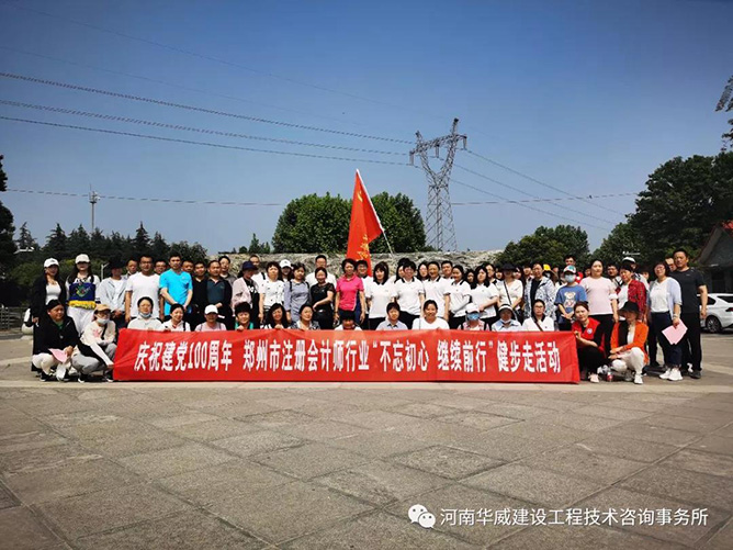 5月20日(星期四)河南華威平臺下河南金毅聯(lián)合會計師事務(wù)所參加了鄭州市注冊會計師行業(yè)黨委舉辦慶祝建黨100周年鄭州市注冊會計師行業(yè)“不忘初心 繼續(xù)前行”健步走活動。