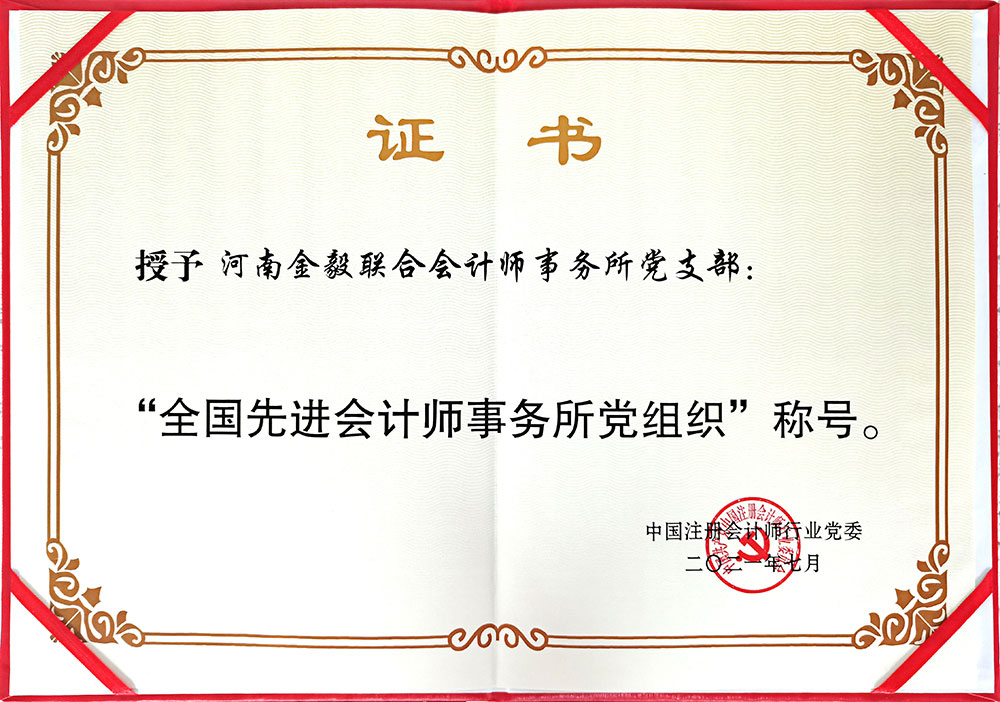 熱烈慶祝河南華威平臺 河南金毅聯(lián)合會計(jì)師事務(wù)所黨支部被中國注冊會計(jì)師行業(yè)黨委授予“全國先進(jìn)會計(jì)師實(shí)務(wù)所黨組織” 稱號
