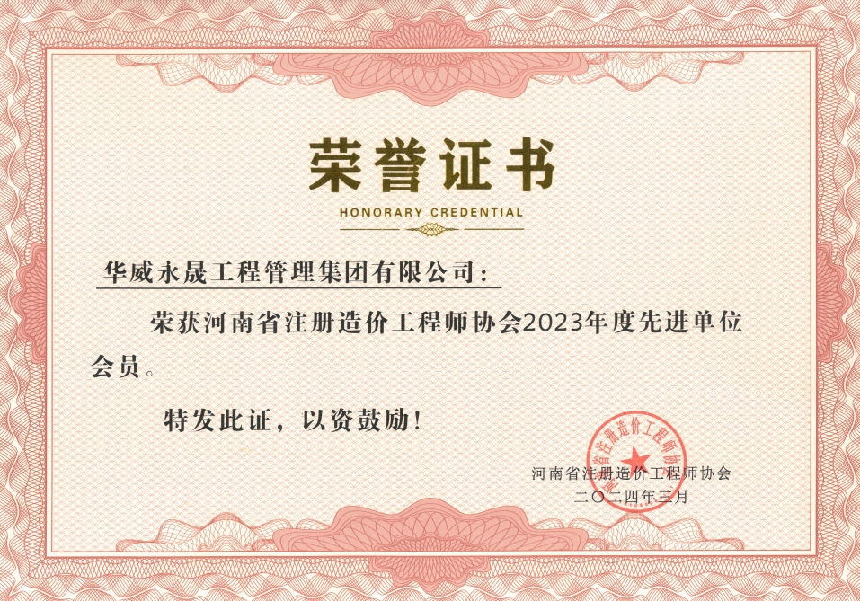 河南省注冊造價工程師協(xié)會“2023年度先進(jìn)單位會員