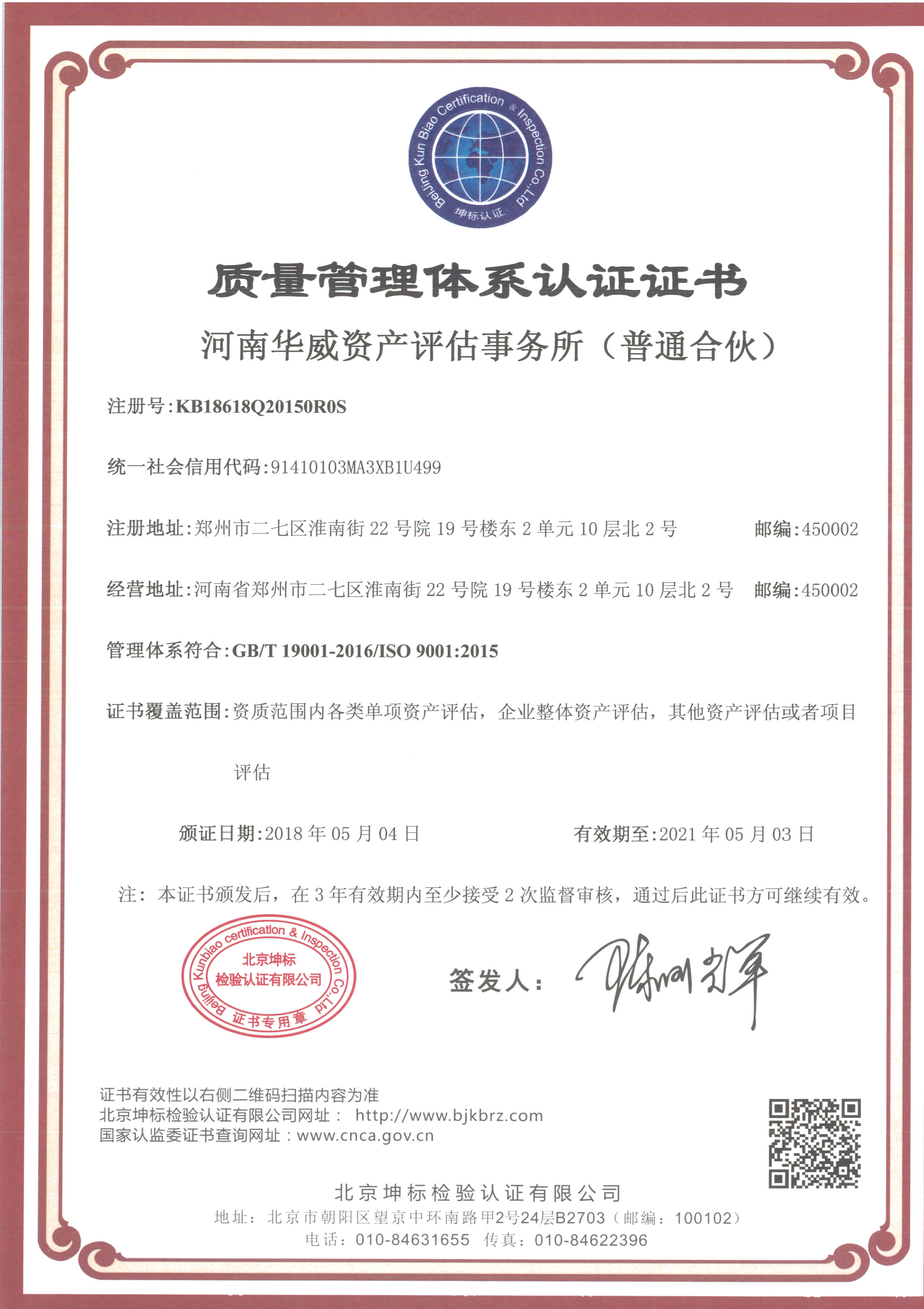 質(zhì)量管理認(rèn)證體系證書(shū)